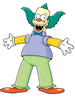 Herschel Shmoikel Pinchas Yerucham Krustofsky (Yiddish: הערשעל שמױקל פּינחס ירוחם קרוסטאָפֿסקי; Hebrew: הירשל שמויקל פנחס ירוחם קרוסטופסקי),[2][3] better known by his stage name Krusty the Clown (sometimes spelled as Krusty the Klown), is a recurring character on the animated television series The Simpsons. He is voiced by Dan Castellaneta. He is the long-time clown host of Bart and Lisa Simpson's favorite TV show, a variety show consisting of various kid-friendly sketches and often highly violent cartoons, most notably The Itchy & Scratchy Show. Despite his cheery onscreen persona, Krusty is actually a cynical, burnt-out, addiction-riddled smoker who is made miserable by show business but continues on anyway. He has become one of the most frequently occurring characters outside the main Simpson family and has been the focus of many episodes, some of which also feature Sideshow Bob.
